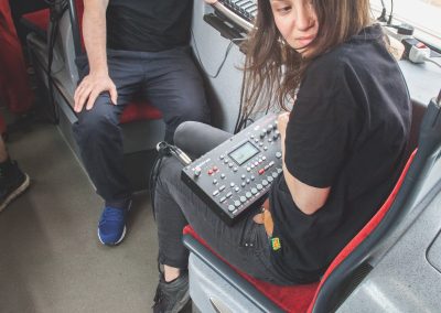 Mika had a life performance in a moving tram (titled TRAMatic Ride) which was based, for 90 %, on field recordings of the residency surroundings and her acoustic experience in Innsbruck.. Very skillfully, and with such refined sense for sound selection, she performed on her octotrack sound machine for 1 hour in the tram, which was driving from the urban city center of Innsbruck into rural mounting countryside.